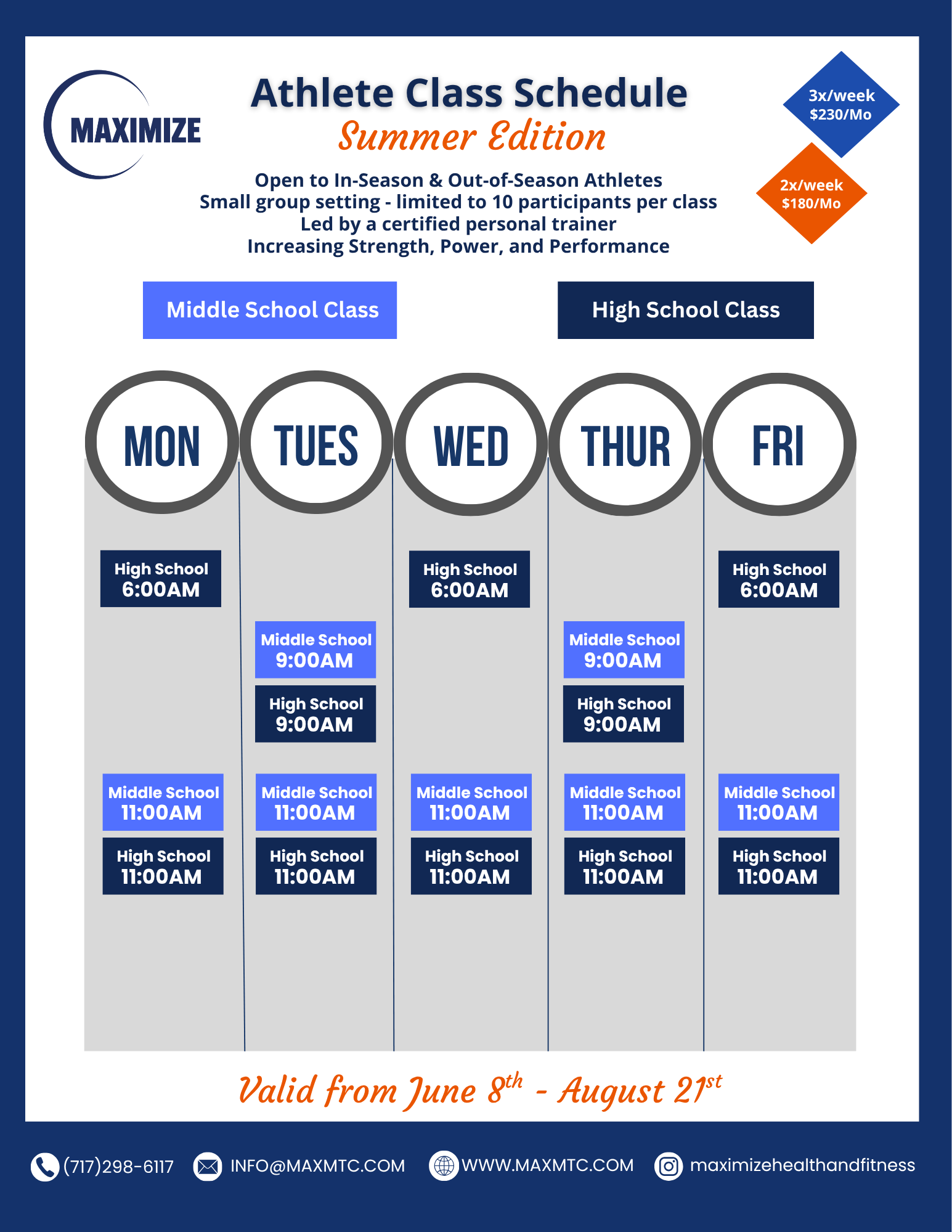 If you need to pause or cancel the membership, please contact us at info@maxmtc.com.